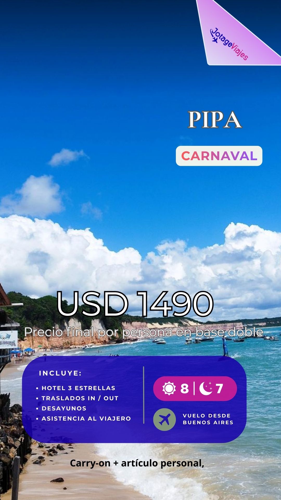 ✈️ Aéreo directo con carry on + art. personal