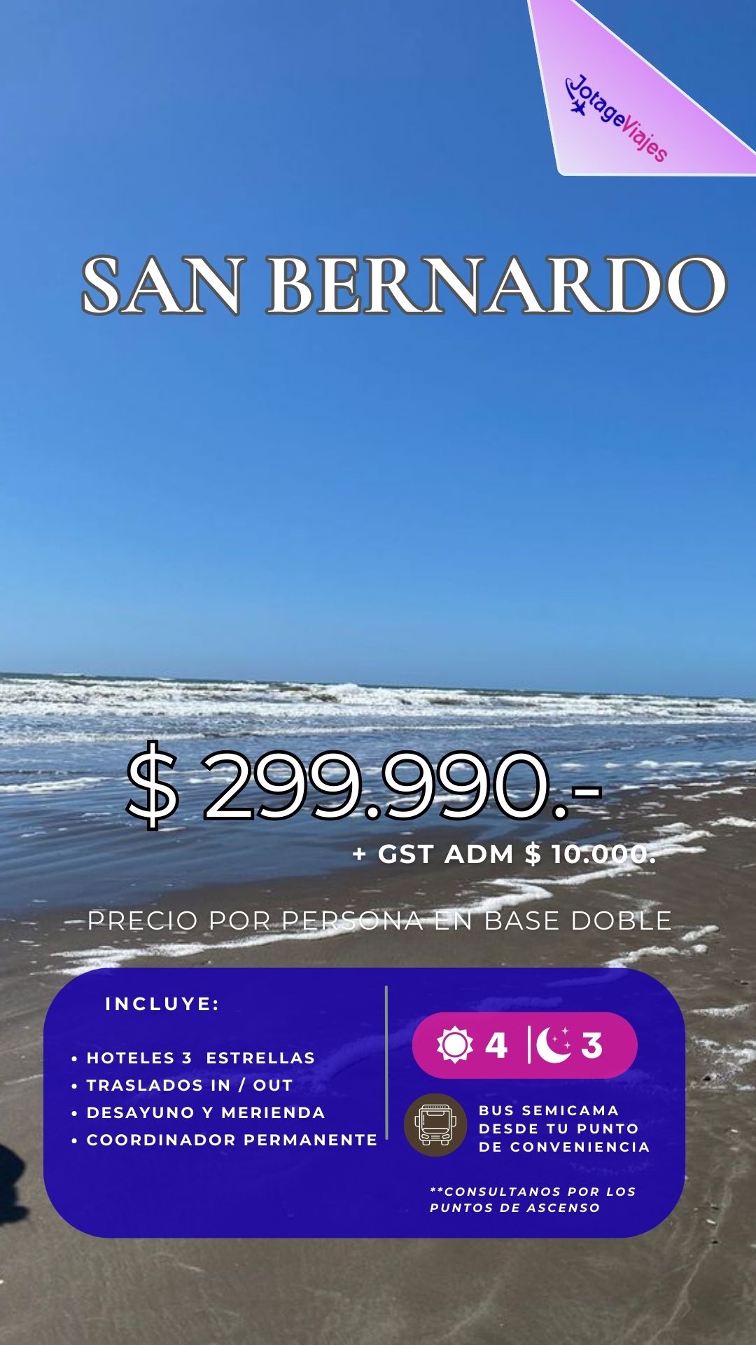 Precio final por persona $299.990. + $10.000.- gst Adm